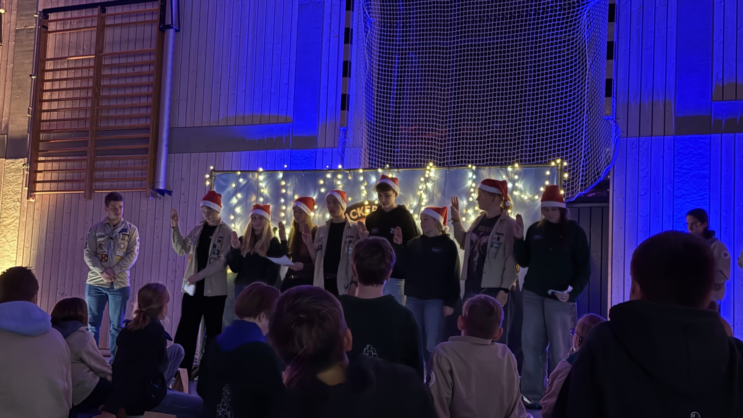 Doch das sollte nicht das einzige Highlight des Abends bleiben. Direkt im Anschluss feierten wir unsere Versprechensfeier: Viele von Euch haben ihr erstes Versprechen abgelegt und stolz ihr erstes Stufenabzeichen an der Kluft befestigt. Dazu kamen einige Stufensprünge und erneuerte Versprechen – ein Moment, der uns jedes Mal aufs Neue berührt.